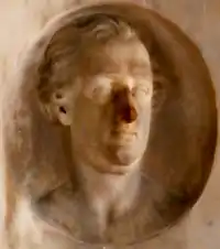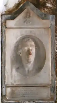 He died in 1826 and was succeeded as 2nd Baron by his younger nephew Lord George Thynne (1770–1838) in accordance with a special remainder in the patent when he was created baron.[6] His simple white marble mural monument with bust survives in Kilkhampton Church, Cornwall, inscribed: