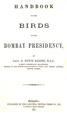 - Barnes, H. Edwin (1885). Handbook to the Birds of the Bombay Presidency.