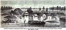 In November 1882, Dr. Edward Palmer of the Smithsonian Institution, ventured to the south to study prehistoric Native American land mounds as well as maps of Arkansas, Tennessee, and Louisiana. Palmer hired Lewis as an assistant. Lewis went on expeditions with Palmer to Avondale Mounds, near Greenville, Mississippi, where he sketched a large body of mound surveys.[6][8] Lewis's drawings were published in Frank Leslie’s Illustrated Newspaper, and helped to disproved the theory that the mounds were built by a "lost race" of non-Indian "Mound Builders, " though he did not receive formal acknowledgment for his work until nearly 100 years after he completed it.[2][4]