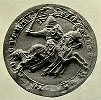 ![]() Seal of Henry Percy from the Barons' Letter, 1301. On his shield he bears the arms of Brabant (Percy modern) | |