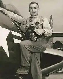 At the beginning of the Korean War, Major Hise returned to combat operations in March 1952 as a member of the VMF-311 flying F9F Panthers.[5] He flew 66 airstrikes in the Korean campaign, including leading the successful destruction of the Chosin hydroelectric plant[6] in June 1952, as part of the Sui-ho Dam Air Attacks. Major Hise received an unofficial United States Marine Corps Foxworth Commendation for his actions in the war.[7]