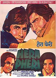 Hera Pheri (transl. Foul play) is a 1976 Hindi crime film directed by Prakash Mehra and starring Amitabh Bachchan, Saira Banu, Vinod Khanna, Sulakshana Pandit, Shreeram Lagoo and Asrani. The film's music is by Kalyanji Anandji and the lyrics were by Anjaan, Indeevar. This movie was a "superhit" at the box office.