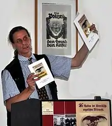 He is also the artistic director of the theatre- and research-project "War is daDa". For that research work he created the two projects entitled "Witness and Victim of the Apocalypse"[6] (Exhibition and book about Viktor Ullmann in World War I and the influence of the experiences of war to his music especially to the opera The Emperor of Atlantis or The Disobedience of Death ARBOS, Vienna-Salzburg-Klagenfurt-Arnoldstein-Prora 2007/2008).[7] A Czech translation of the book has been published at Prague and a Czech version of the exhibition has been presented at the City Archives of Prague in the Clam-Gallas Palace in 2015.[8] A Russian translation of the book has been published at St. Petersburg and a Russian version of the exhibition has been presented at the Russian Museum of the city of Kingisepp and at the House of Composers in St. Perersburg in 2016.[9] A Slovenian translation of the book has been published at Nova Gorica and a Slovenian version of the exhibition has been presented at the museum Grad Kromberk of the Goriški muzej in Nova Gorica in 2018 and 2019.[10]