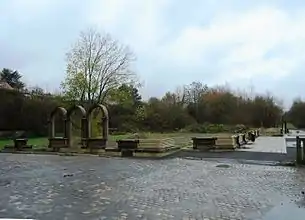 After the closure of the station in 1966 the platforms were quickly torn up, but the main station building remained, standing empty for many years. Eventually, despite local protests, the main station building itself was torn down in 1983. All that now (2014) remains visible is a couple of foundation stones and steps.[3] During the summer of 2014 the local municipality organised an exhibition on the site, dedicated to the station's history.[4] Plans exist for a more permanent display or exhibition centre.[5]