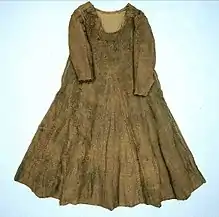 Some of the deceased at Herjolfsnes had been laid to rest in wooden coffins. However, perhaps owing to the scarcity of wood, it increasingly became the practice to wrap the deceased in layers of wool clothing.[7] This practice inadvertently created a treasure trove of medieval textile and fashion artifacts when the graves and well-preserved clothes were excavated in the early 20th century.