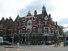 Herne Hill railway station on Railton Road was opened by the London, Chatham and Dover Railway in 1862; the Gothic, polychrome brick[15] station building was Grade II listed in 1998.[16] The associated railway viaduct and bridges are also noteworthy; The Building News stated in 1863 that the viaduct was "one of the most ornamental pieces of work we have ever seen attempted on a railway" for its fine brickwork.[17]