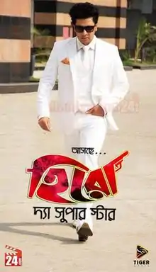 Hero: The Superstar is a Dhallywood action comedy film directed by Badiul Alam Khokon. The film stars Shakib Khan in a dual role along with Apu Biswas and Bobby as the female lead,[1] while Amit Hasan, Shiba Shanu, Misha Sawdagor, Nuton, Rebeka Rouf And Uzzal play supporting roles. The film is loosely inspired by two Telugu films: Rebel and Naayak. The film marks the debut of Shakib Khan as a producer.[2][3] Hero: The Superstar released on Eid-ul-Fitr of 29 July 2014 in 120 screens which was the widest release for any Bangladeshi film.[4]