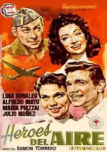 Heroes del Aire (aka Air Heroes, Aguilas de Paz, Heroes of the Sky and Hèreos del Air) is a 1958 Spanish war film directed by Ramón Torrado and written by H.S. Valdés and stars Alfredo Mayo, Lina Rosales, Maria Piazzai and Julio Núñez.[1] The film was released on May 19, 1958, by Arturo González Producciones Cinematográficas.[2] During the postwar years, only 21 Spanish films depicted the combat of the Spanish Civil War, with Heroes del Aire treating the subject obliquely in a series of flashbacks.[3]