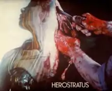 Levy was particularly interested with the audience's experience of films emotionally rather than the experience of a coherent narrative,[3][5][6] and also wanted to break the barrier between the film and its audience with the intent to produce an "alienation effect".[8][10] While at Slade he wrote that he wished to "investigate the problems of perception, memory, time-sense and emotion associated with the techniques of the film medium",[11] and throughout Herostratus the composition of many scenes rests on their emotional impact rather than any pervasive symbolic meaning.[3][6] In his essay "You CAN get out: Herostratus Now" critic Amnon Buchbinder discusses the recurrent slaughterhouse and striptease scenes as one example of the film's emotional purpose, and asserts that these scenes do not convey distinct symbolic meaning.[9] To Buchbinder the combination of these sequences is intended to convey the experiences of desire and disgust to the audience, through the juxtaposition of visceral scenes of both "The rending of flesh and the revealing of flesh".[9]