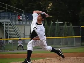 With an overhand delivery, Nomo threw a fastball topping out at 95 mph and a forkball as his primary pitches.[14]