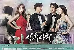 High Society (Korean: 상류사회; RR: Sangryusahoe) is a 2015 South Korean television series starring Uee, Sung Joon, Park Hyung-sik and Lim Ji-yeon.[1][2][3][4][5][6][7][8] It aired on SBS from June 8 to July 28, 2015 on Mondays and Tuesdays at 21:55 (KST) time slot for 16 episodes.[9][10]