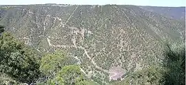 The town of Hillgrove was established in 1884 and grew rapidly during the 1880s and 1890s due to the expanding production of the mining companies. Hillgrove Post Office opened on 1 June 1884 and closed in 1979. A Hillgrove West Post Office opened in 1890, was renamed Metz in 1896 and closed in 1922.[2] At its peak in about 1898, the town's population was close to 3,000, similar to that of Armidale.[1] Hillgrove then had four churches, six hotels, two schools, a school of arts, a hospital, several banks, a stock exchange, a court house, police station, a recreation ground, a technical college, debating society, a temperance league and a cordial factory. The town also printed its own local paper, the Hillgrove Guardian. In 1895 it became the first town in Australia to be supplied with power by means of hydro-electricity which operated from Gara Gorge to the west.