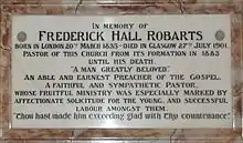 The church opened in 1883, stressing an open congregation basis, meaning worshippers need not be baptised, only the Minister.[24] Some of the congregation were drawn from Presbyterian churches.[25] Within a decade of consecration, in 1891, Hillhead Baptist Church had an established congregation exceeding 500 regular members, many of whom were commercially active and prosperous merchants.[26] Baptist churches in Glasgow were known to attract commercially active and middle class congregations.[27]