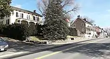 "Although there were mills and houses in the Gap in the late 1700s, the town of Hillsboro (spelled Hillsborough until its 1880 incorporation) was not formally established until December 31, 1802 by an act passed by the Virginia General Assembly. The trustees of Hillsboro named in the act were Mahlon Hough, Samuel Purcell, Jr., Thomas Leslie, Josiah White, Jr., Edward Cunard, Mahlon Roach, and Thomas D. Stevens. By June 20, 1811, when Henry Griffin bought lot No. 12 on the town plat at auction for $88.50 paid to the trustees, he was required to build "a House thereon Twelve feet Square or equal thereto with a Stone or Brick Chimney to the same and a Shingle Roof on it within Four years of the Day of the Sale of the said lott." Due to its favorable location on the Vestal's Gap Road, the town grew quickly and in the early 1800s was one of the leading trade centers of western Loudoun, along with Snickerville (Bluemont) and Woodgrove, which has since disappeared. Much of Hillsboro's activity was due to its mills, with as many as five operating at one time, all on Catoctin Creek or its nearby branches."[9][10]