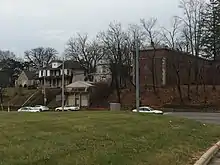 The Hilltop Area was once home to the Columbus State Hospital for the Insane. Built in 1870, this hospital was a staple of the neighborhood and its impact has been felt ever since. Bordered by Broad St. to the south and Wheatland Ave. to the west, this site served as a gateway into the community. The style of this hospital was very similar to a hospital in Athens, Ohio, yet significantly larger. This building followed the Kirkbride Plan, a system established to provide "air and sunlight" in order to cure its patients. The building was closed in the 1980s, and subsequently torn down and replaced by offices of the Ohio Department of Public Safety and Ohio Department of Transportation.[5] This hospital as well as the Columbus State Institute employed nearly 450 people, many of whom lived in Hilltop.
