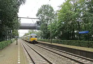 Hilversum Media Park (Dutch pronunciation: [ˌɦɪlvərsʏˈmeːdijaː ˌpɑr(ə)k]), previously called Hilversum NOS (1974–1989) and Hilversum Noord (1989–2013), is a railway station in the city of Hilversum, Netherlands. Opened on 25 September 1974,[1] Hilversum Media Park is located on kilometre 27 of the Amsterdam–Zutphen railway, partly called the Gooilijn because of the region it runs through. The station is situated north of the city centre, serving the Media Park, where most Dutch television and radio broadcasters are located. The station has two platforms, which are connected through a covered footbridge. Before 1989, the station was named after the public broadcaster Nederlandse Omroep Stichting, more commonly referred to as NOS.