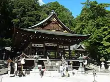 Himure Hachiman-gū (日牟禮八幡宮) is a Shinto shrine located in the city of Ōmihachiman, Shiga Prefecture, Japan. The city is named after this shrine, and it is located within the Omihachiman City Traditional Buildings Preservation Area. The shrine has two main festivals, the Sagichō Matsuri (左義長まつり) and the Hachiman Matsuri (八幡まつり) which are both designated National Intangible Folk Cultural Properties.[1]