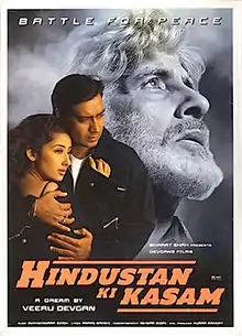 Hindustan Ki Kasam (Swear on India) is a 1999 Indian action film directed by Veeru Devgan and starring his son Ajay Devgn (first movie in dual role), Amitabh Bachchan, Manisha Koirala and Sushmita Sen. The film was an average grosser, despite taking a bumper opening.[1] The movie broke the opening day record in India at the time of its release and managed to do average business at the box office .[2]