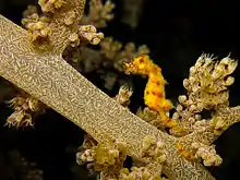 Hippocampus waleananus, the Walea soft coral pygmy seahorse, was regarded as a synonym of Hippocampus satomiae, Lourie & Kuiter, 2008,[3] however, some taxonomists suggested this name should be valid.[4] The species was described in 2009 from a single specimen which was found close to the island Walea. This species is endemic to the Togian Islands in Indonesia, and is associated with specific soft corals.[5]