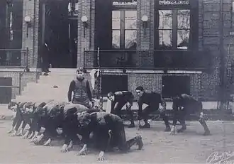 University of Alabama law student William G. Little learned how to play American football while attending prep school in Andover, Massachusetts and began teaching the sport to fellow Alabama students in early 1892.[2] Later in the year, the school formed an official team of 19 players, with Little as captain and E. B. Beaumont as head coach.[3] Among those also on the team were William B. Bankhead, future U.S. Speaker of the House, and Bibb Graves, future governor of Alabama.[4] The team was referred to as the "Cadets", the "Crimson White", or simply as "the varsity".[3][5]