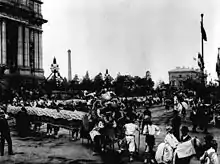 The fall of the Qing dynasty was met with mixed emotions by Chinese Australians. Some of the older Chinese-born men were supporters of the reform movement and in Sydney, Chinese conservatives got together for a dragon flag parade in support of the old regime.[15] Others, however, supported Sun Yat-sen. Some Chinese Australians even returned to China to fight for the KMT both before the Xinhai Revolution and afterward during the Northern Expedition. The KMT had quite a following in Australia. There were many KMT branches around Australia. During the Second Sino-Japanese War the Darwin branch of the KMT was a valuable source of information for Chinese Australians.[19] Chinese Australians also showed the support for the republic with monetary donations. In 1913 Chinese Australians, Chinese New Zealanders and others in the Chinese diaspora in the Pacific donated £36,000 to China. A letter of thank you to the Chinese Australians from the Finance Minister of the Republic is on display at the Golden Dragon Museum.