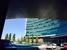 Cleveland Clinic built new operating rooms in the early 1970s to accommodate the growth of cardiac surgery.[15] The Martha Holding Jennings Education Building opened in 1964, with an auditorium named for Bunts. A new hospital building (currently home to Cleveland Clinic Children's) was opened in 1966, and a new research building went up in 1974 (demolished in 2007).[15] A pathology and laboratory medicine building was constructed on Carnegie Avenue in 1980.[28] Kiser led the development of a strategic plan to accommodate growing patient volumes in the late 1970s. This resulted in a group of buildings known as the Century Project. Completed in 1985, the Century Project including a 14-story outpatient building (now known as the Crile Building), designed by architect Cesar Pelli, .[31]