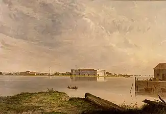 As realization dawned that more housing would be needed for the increasing number of POWs captured by Union troops, officials at the fort embarked on a construction program in 1862, building barracks for enlisted men which came to be known as the "bull pen."[9] A 600-bed hospital was also built, as were barracks for the Union soldiers who would be brought in to guard the increasing POW ranks.