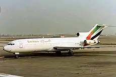 In the mid-1980s, one of the best airlines in the world at that time, Pakistan International Airlines played a large role in establishing the Emirates airline by providing technical and administrative assistance to the new carrier as well as gifting a new Boeing 737-300 and an Airbus A300B4-200.[3] The Royal Family's Dubai Royal Air Wing also provided the airline with two used Boeing 727-200 Adv.[4] The airline's first flight, flight EK600, was from Dubai, UAE to Karachi, Pakistan on 25 October 1985.[4]