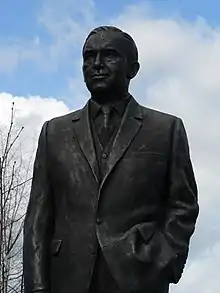 Robson's achievements with Ipswich earned him an offer from the Football Association to become the England national coach; he declined an offer of a ten-year contract extension from Ipswich director Patrick Cobbold.[45] On 7 July 1982, two days after England were knocked out of the 1982 World Cup, Bobby Robson left Ipswich to succeed Ron Greenwood as coach of England.[46] During his 13-year tenure at Ipswich, Robson brought in only 14 players from other clubs, relying instead on players developed through the club's youth programmes.[47] In 2002, in recognition of Robson's achievements with the club, a life-size statue of him was unveiled opposite the Cobbold Stand at Portman Road.[48] On 7 July 2006, Robson was named as honorary president of Ipswich Town Football Club, the first since Lady Blanche Cobbold who had died in 1987.[49]