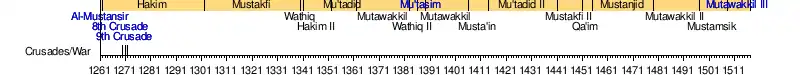 The next caliph, Al-Mustanjid, saw Saladin extinguish the Fatimid dynasty after 260 years, and thus the Abbasids again prevailed. Al-Mustadi reigned when Saladin become the sultan of Egypt and declared allegiance to the Abbasids.
