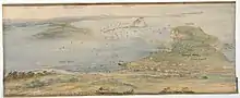 The Awabakal, Worimi, Wonnarua, Geawegal, Birrpai and Darkinjung peoples are the traditional owners of the land that now makes up the lower Hunter Region.[6] The Awabakal people called the area Mulubinba, after an indigenous fern called the mulubin. Archaeological evidence indicates that human beings have inhabited the landscape of Newcastle for at least 6500 years. In 2009, archaeologist uncovered artefacts including a hearth and factory at the site of the former Palais Royale on Hunter Street. Over 5,534 Aboriginal artefacts were recovered, representing three occupation periods dating from 6,716 - 6,502 years BP (before present). This site was identified as a site of ‘high to exceptional cultural and scientific significance’.[1] Over the millennia, the artefacts manufactured there, on what came to be known as Cottage Creek, were probably traded across the region, and across many territories or countries.