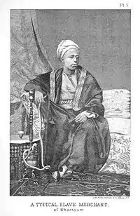 The coup of 1718 kicked off a policy of pursuing a more orthodox Islam, which in turn promoted the Arabization of the state.[63] In order to legitimize their rule over their Arab subjects the Funj began to propagate an Umayyad descend.[64] North of the confluence of the Blue and White Niles, as far downstream as Al Dabbah, the Nubians would adopt the tribal identity of the Arab Jaalin.[65] Until the 19th century Arabic had succeeded in becoming the dominant language of central riverine Sudan[66][67][68] and most of Kordofan.[69]