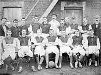 Confusion over the original date arose in the mid-1990s and continues to arouse controversy, with the club accepting the earlier date and then reverting to the original during the late 21st century. Former club statistician Paul Plowman researched the early history of the club during the period 1990–95 and discovered newspaper reports of a game in 1879 between Swindon Association Football Club and Rovers F.C..[1] The report and team photos show William Pitt playing for the team.[2] Reverend Pitt, who was 23 at the time, was the curate of Christchurch, Swindon's central church. He was appointed Rector of Liddington church in 1881 and severed his ties to the club. Plowman was given the role of Swindon Town Retail Manager in 1995 and the kit for the 1995–96 season carried an "Est. 1879" tag, since removed.[1] Further discoveries include an after-dinner speech at the Southern League championship celebrations in 1911 made by Reverend Pitt in which is recalled: