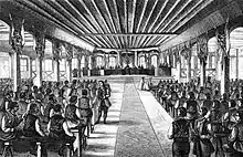 Turnovgrad was an administrative, military, economic, cultural and religious center.[5] During this period, the Art School of Tarnovo, the Tarnovo Literary School, the Turnovo Architecture developed. The city is ruled by several dynasties: Asenevtsi, Smilets, Terterovtsi, Shishmanovtsi. The city maintained commercial relations with major European cities and towns in the Middle East. Serbian King Saint Sava died in the city, his relics were later handed over to Serbia.[6]