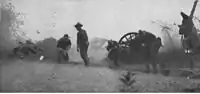 Cannon were crucial in Napoleon Bonaparte's rise to power, and continued to play an important role in his army in later years.[122] During the French Revolution, the unpopularity of the Directory led to riots and rebellions. When over 25,000 of these royalists—led by General Danican—assaulted Paris, Paul François Jean Nicolas, vicomte de Barras was appointed to defend the capital; outnumbered five to one and disorganized, the Republicans were desperate.[123] When Napoleon arrived, he reorganized the defenses, while realizing that without cannon, the city could not be held. He ordered Joachim Murat to bring the guns from the Sablons artillery park; the Major and his cavalry fought their way to the recently captured cannon, and brought them back to Napoleon. When Danican's poorly trained men attacked, on 5 October 1795, 13 Vendémiaire, 4 in the calendar used in France, at the time—Napoleon ordered his cannon to fire grapeshot into the mob,[124] an act that became known as the "whiff of grapeshot".[125] The slaughter effectively ended the threat to the new government, while, at the same time, made Bonaparte a famous—and popular—public figure.[124][126] Among the first generals to recognize that artillery was not being used to its full potential, Napoleon often massed his cannon into batteries, and introduced several changes into the French artillery, improving it significantly, and making it among the finest in Europe.[127][128] Such tactics were successfully used by the French, for example, at the Battle of Friedland, when sixty-six guns fired a total of 3,000 roundshot, and 500 grapeshot,[127][129] inflicting severe casualties on the Russian forces, whose losses numbered over 20,000 killed and wounded, in total.[130] At the Battle of Waterloo—Napoleon's final battle—the French army had many more artillery pieces than either the British or Prussians. As the battlefield was muddy, recoil caused cannon to bury themselves into the ground after firing, resulting in slow rates of fire, as more effort was required to move them back into an adequate firing position;[131] also, roundshot did not ricochet with as much force from the wet earth.[132] Despite the drawbacks, sustained artillery fire proved deadly during the engagement, especially during the French cavalry attack.[133] The British infantry, having formed infantry squares, took heavy losses from the French guns, while their own cannon fired at the cuirassiers and lancers, when they fell back to regroup. Eventually, the French ceased their assault, after taking heavy losses from the British cannon and musket fire.[134]