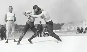 A "Golden Age" for the sport followed, cut short with the breakout of World War I in 1914. In 1898 the Frenchman Paul Pons, “the Colossus” became the first Professional World Champion.[27][28] Leading wrestlers during this time, such as Georg Hackenschmidt, Stanislaus Zbyszko, William Muldoon, Frank Gotch, Constant Lavaux, had the status of popular heroes.[26][29]