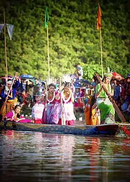 Hiyang Tannaba (Meitei: ꯍꯤꯌꯥꯡ ꯇꯥꯟꯅꯕ) (literally, "Boat race"[1]) is a traditional boat race ceremony performed in Manipur, India as a part of the religious festival of Lai Haraoba.[2][3] It is generally organized in the month of November at many places including Thangapat (moat).[1][2] The boats called Hiyang Hiren are regarded as invested with spiritual powers and the game is associated with religious rites.[1][4] The Meiteis, the Pangals and Meitei Christians believe that the worship of the Hiyang Hiren will bring protection from evil spirits.[1]