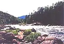 Most linguists accept the word Hochelaga as a French corruption of an Iroquoian term — either osekare, meaning "beaver path" or "beaver dam", or osheaga, meaning "big rapids", in reference to the nearby Lachine Rapids.[5][6] An alternative explanation has been proposed in which osheaga means "people of the shaking hands"; in some versions of this story, the Iroquoian people were bewildered by Cartier waving his hands wildly to attract their attention as he first approached the settlement in his boat, while in others, they were bewildered by his European custom of greeting them with a handshake.[7] These latter explanations are favoured by the Mohawk people further downriver at Kahnawake, but are not easily supported by the Mohawk language's significant dissimilarities from what is known of the related but not identical Laurentian language, which was spoken by the Iroquoian people at Hochelaga.[7]