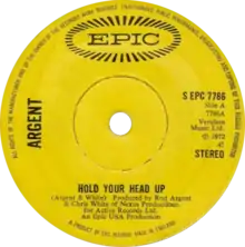"Hold Your Head Up" is a song by the English rock band Argent, released as a single in 1972. The song was a Top 5 hit in both the US and UK, peaking at No. 5 in both countries. However, it was the band's only song to chart on the Billboard Hot 100.[2] Billboard ranked it as the No. 50 song for 1972. The song appeared on the third Argent album All Together Now (1972). The album version is 6:15 while the single version is 3:15. The DJ edit has a run-time of 2:53.