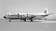 Holiday Airlines was an intrastate airline in the United States. Holiday operated scheduled passenger service with Lockheed L-188 Electra turboprops in California primarily serving Lake Tahoe Airport from both the Los Angeles-Burbank-Long Beach-San Diego area in southern California and the San Francisco Bay Area in northern California during the 1960s and 1970s.[4][5] The company slogans were Fastest Fun in the West and The Great Chair Lift.[6]