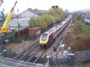 ![]() Train passing the site of the former station (2008) | |