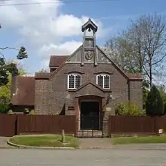 The parish covers a mostly rural area in Mid Sussex. The only settlements are Cuckfield itself and the nearby hamlets of Ansty and Brook Street. Both formerly had chapels of ease of their own.[2] The chapel at Brook Street was dedicated to All Saints[51] and was served by Holy Trinity's curates and their assistants.[52] It was opened in 1879 by the vicar of Holy Trinity Church, Rev. Francis Mount.[32] Services continued to be held there until November 1968, by which time the structure had become unsafe and congregations were declining.[51] The building now houses a picture-framing shop.[53] At Ansty, also in 1879, Rev. Mount opened a tin tabernacle. This was enlarged with a proper chancel in 1883,[51] and on 10 December 1909 it reopened in a new, brick-built form as St John's Chapel after being rebuilt and rededicated as a memorial to a local resident.[54][55] Thoughts of closing the church first arose in 1998, when finding enough clergy and laypeople to run it effectively started to become very difficult, and in January 1999 the proposal was put to worshipers and local residents. Combining its spiritual functions with those of a community centre were considered, but the outcome was the closure and sale of the chapel.[56] The last service took place at Christmas 2000,[57] and the building was converted into a house.[58]