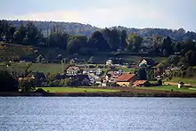 There are seven sites in Hombrechtikon that are listed as Swiss heritage sites of national significance. The houses in the town include; the Hof Oberhaus at Seestrasse 2&4, the Hürlimannhaus at Lützelsee 2&4, the Landstiz Rosenberg at Alte Landstrasse 1&3, the Menzihaus at Lützelsee 3 and the Eglihaus at Lutikon 1-3. The town's Reformed church is also on the list. The neolithic and early Bronze Age settlement at Feldbach is the last site on the list. The entire hamlet of Lützelsee and the Feldbach area are part of the Inventory of Swiss Heritage Sites.[7] The prehistoric settlement Seegubel at Feldbach is part of the Prehistoric Pile dwellings around the Alps, a UNESCO World Heritage Site.[8]