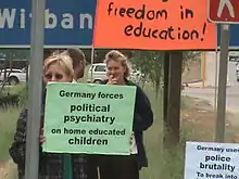 In opposition of the prosecution of home schoolers in Germany, the Association for Homeschooling holds a protest at the Deutsche Schule in Pretoria to bring this to the attention of the German community.[10]