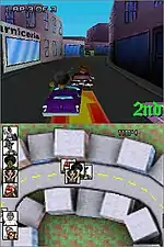 The game's main mode is called Wizard Circuit, where the different Homies characters race in a competition set up by Vato Wizard, who promises to grant a single wish to whoever wins the cup.[2][5] To progress through the mode, players must place first in a series of races.[6] The game also has a multiplayer mode that supports up to eight players via a local wireless connection, although multiplayer with up to four players was also possible with the Nintendo Wi-Fi Connection.[2]