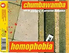 "Homophobia" is a song by English rock band Chumbawamba from their sixth studio album Anarchy (1994). A remixed version of the song featuring the Sisters of Perpetual Indulgence, titled the "Sisters Mix" was released as the third single from the album in 1994. Concerning the topic of modern homophobia, the song remained a regular part of Chumbawamba's live set from its initial release in 1994 up to the band's retirement in 2012. Live recordings of the song are featured on Chumbawamba's two live albums Showbusiness! and Get On with It.