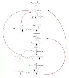 The bifunctional aspartokinase-homoserine dehydrogenase (AK-HSD) enzyme has a regulatory domain that consists of two subdomains with a common loop-alpha helix-loop-beta strand loop-beta strand motif. Each subdomain contains an ACT domain that allows for complex regulation of several different protein functions.[5] The AK-HSD gene codes for aspartate kinase, an intermediate domain (coding for the linker region between the two enzymes in the bifunctional form), and finally the coding sequence for homoserine dehydrogenase.[6][7]