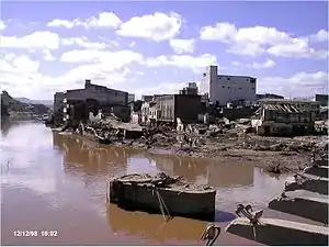 The nation's economy is primarily agricultural, making it especially vulnerable to natural disasters such as Hurricane Mitch in 1998.[9] The lower class is primarily agriculturally based while wealth is concentrated in the country's urban centers.[10] Honduras has a Human Development Index of 0.625, classifying it as a nation with medium development.[11] When adjusted for income inequality, its Inequality-adjusted Human Development Index is 0.443.[11]