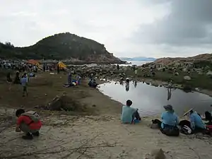 Macao announced on 21 August that some objects suspected to be polypropylene pellets were found at Hac Sa Beach and Cheoc Van Beach on that day and the day before.[6] Although the government said that most of the plastic pellets had been cleaned up on 24 August,[7] the next day citizens encouraged by environmental organisations that called on volunteers via the Internet went to the beaches to pick up plastic pellets, which were weighed half kilogram.[8]