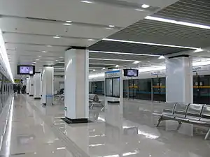 Hongkou Football Stadium (simplified Chinese: 虹口足球场; traditional Chinese: 虹口足球場; pinyin: Hóngkǒu Zúqiúchǎng) is an interchange station between Lines 3 and 8 on the Shanghai Metro.[1] The station opened on 26 December 2000 as part of the initial section of Line 3 from Shanghai South Railway Station to Jiangwan Town;[2][3] the interchange with Line 8 opened on 29 December 2007 as part of that line's initial section from Shiguang Road to Yaohua Road.[4]